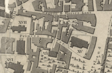 1829 Rayner Leech, builder, bankrupt. Two of his properties on Princes Street up for auction. “Recently built” so may be present day 16 and 18 Princes Street.