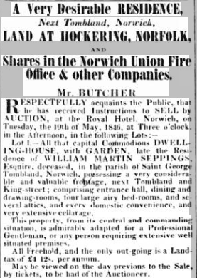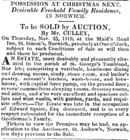 1815 Squire & Hills Norwich sale of pub